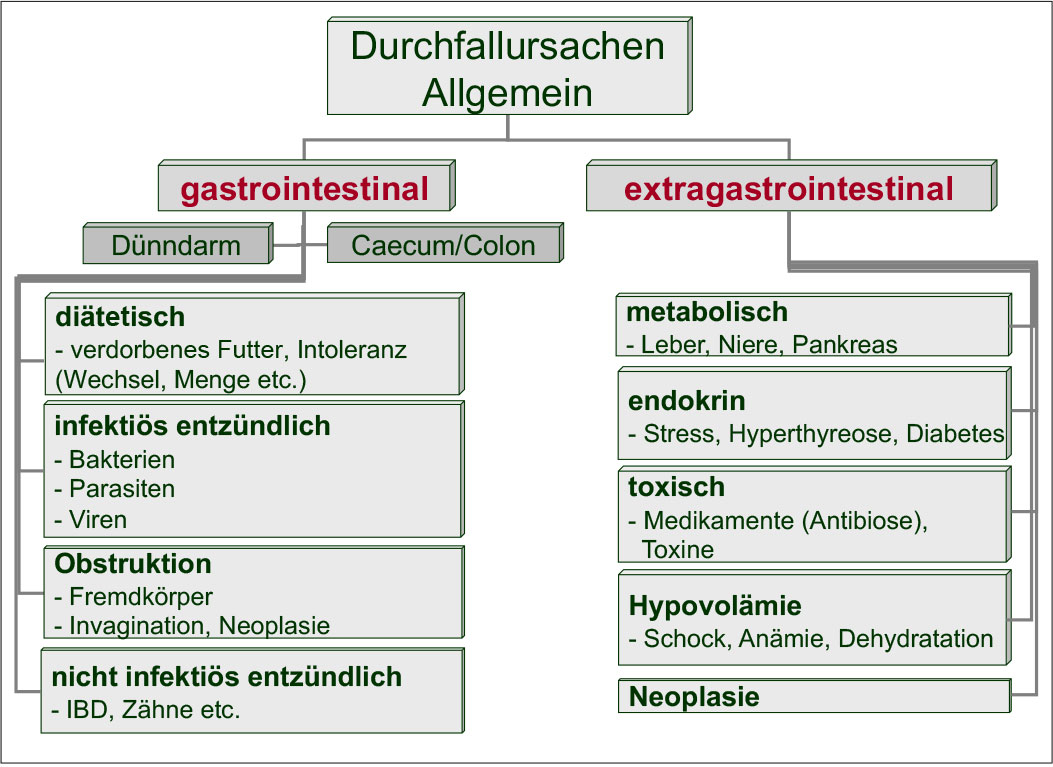 Die Durchfallursachen (Abb. 1) sind ebenso vielfältig wie die Zahl der Kleinsäugerarten und ihre Unterschiede in Anatomie, Physiologie und Krankheitsprädisposition.