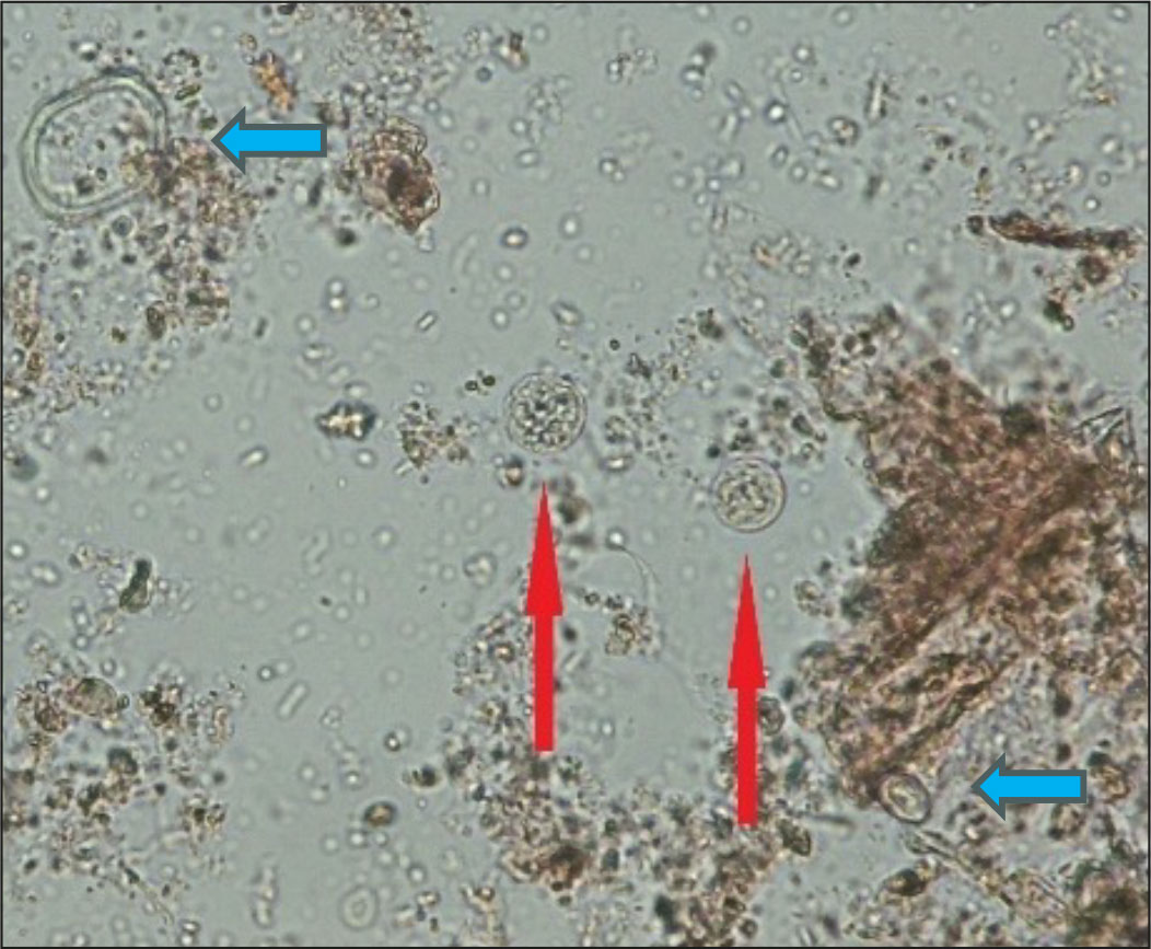 Worauf geachtet werden sollte, ist, dass Pollen, andere Pflanzenbestandteile und Milbeneier nicht mit Parasitenstadien verwechselt werden (Abb. 4).