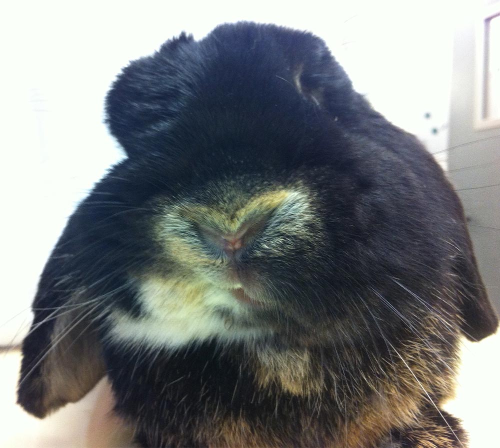 Abb. 2: Facialisparese mit rechtsseitig kontrahierter Oberlippe bei einem Widderkaninchen