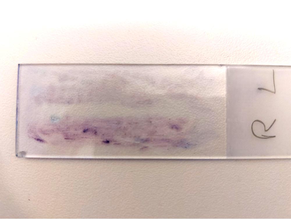 Es ist immer sinnvoll beide Ohren zu beproben (ggf. auf einem Objektträger nebeneinander ausstreichen) (Abb. 5), auch oder gerade, wenn nur ein Ohr betroffen ist, um einen Eindruck vom normalen Ohrmikrobiom des Patienten zu erhalten.